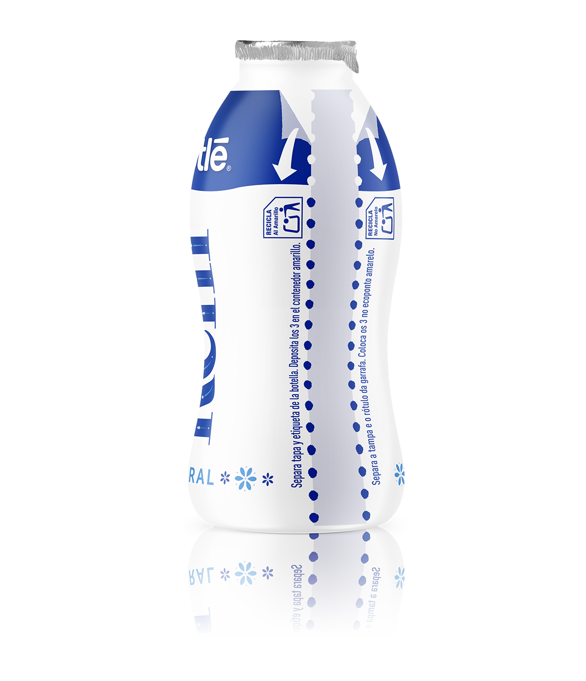 La etiqueta de nuestras botellas on-the-go tiene un pre-corte para que la puedas separar fácilmente de la botella, antes de depositar ambos elementos en el contenedor amarillo. Con este gesto simple, ayudamos a un mejor reciclaje.